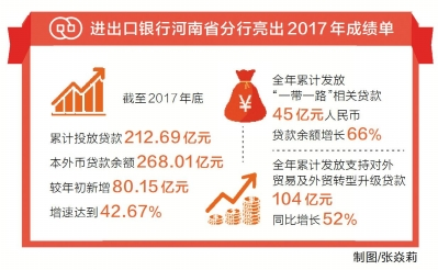 1月29日,進出口銀行河南省分行行長吳啟金表示,過去一年,分行努力貫徹習近平新時代中國特色社會主義思想,助力河南打造內陸開放新高地。截至2017年底,進出口銀行河南省分行累計投放貸款212.69億元,本外幣貸款余額268.01億元,有力助推我省企業“走出去”。