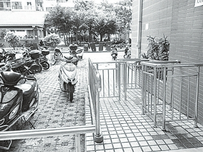 物業公司在電梯內安裝了一個座椅,防止電動車上樓。